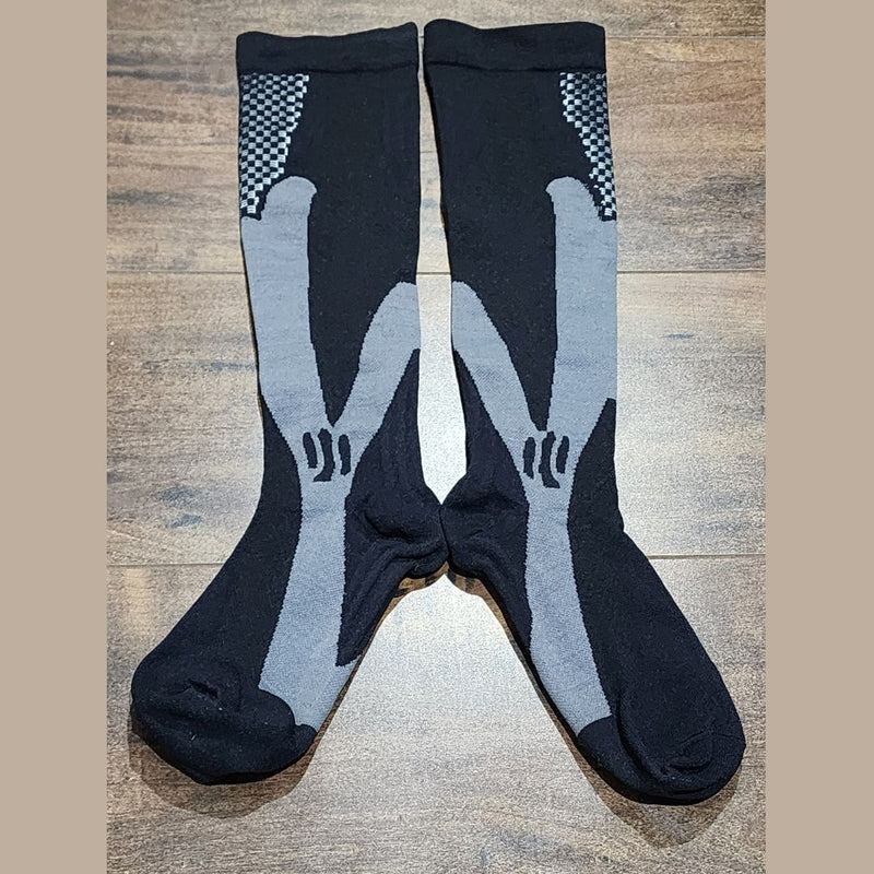 The graduated compression helps push blood from the legs back to the heart, reducing swelling and fatigue.